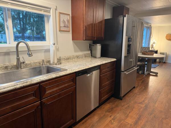 Charming furnished 1-bedroom home in Burlington on a quiet 1-acre property. Features a cozy bedroom, comfortable living space, and a small fenced yard perfect for dogs. Parking for 2 vehicles on site. Shared grounds with 2 other rental houses, creating a peaceful residential setting. Dogs welcome!