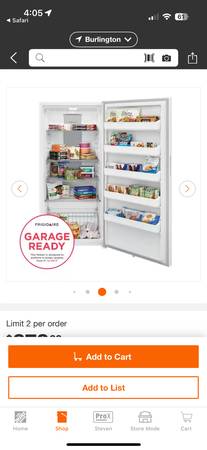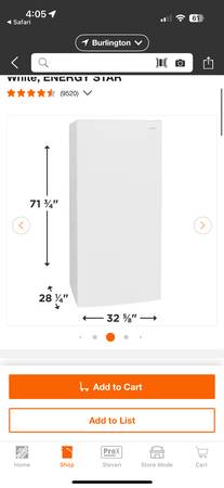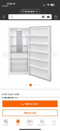 Frigidaire 20 CU ft freezer. $1000 new. Good condition. Just need space.