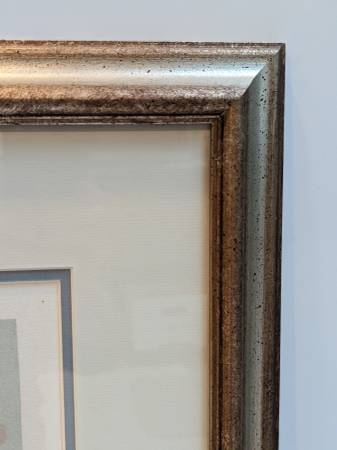 Wonderful and whimsical Yvonne Davis etching in a custom solid would fancy frame with double matting. Title: "Imitation" and #35/350. Pencil signed and numbered by the artist. Custom solid wood frame with antique silver finish. Certificate of authenticity on the back. Acid free paper and matting. Both the frame and work and in perfect condition.