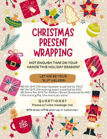Need an extra hand this holiday season? Let me wrap your gifts for you! Whether you have 2 or 20, I can wrap them all!🎅