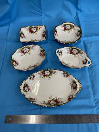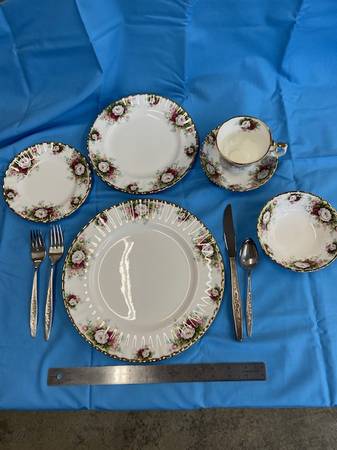 12 place setting of Royal Albert Fine China, Celebration pattern, with serving pieces.