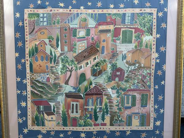 Beautiful French Silk painted artwork Hand-Painted Provançe Village Scarf Paul Cézanne (French, 1839-1906). $100.00 Available by appointment Commercial art artwork painted silk framed artwork French...