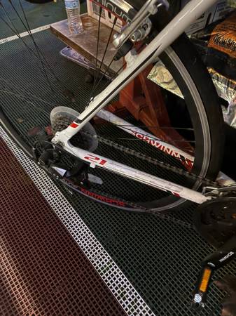 I’m selling a 21 speed Schwinn road bike. Tires hold air and gears and brakes work. It’s pretty light too. I’m asking $40 for a quick sale and hoping it will go to a good home. Sorry for the poor picture. It was hard to photograph. : ). Thank you for looking.