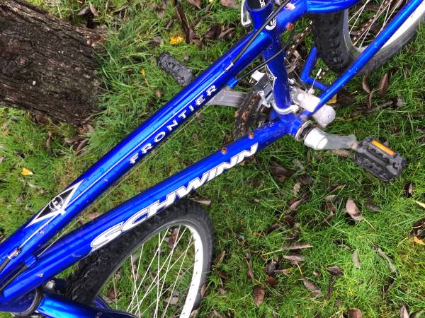 Schwinn Frontier Youth Mountain Bike 7 Speed Shimano brakes, suspension Comes with bell, new seat Needs kickstand Great ride for kids 6-11 years old $100