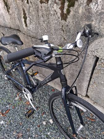 VERY NICE HYBRID 21 SPEED FLIP SHIFTERS BONTRAGER 700X36C TIRES RIGID SUSPENSION 18.5" CRANK TO SEAT POST COMFORT SEAT BOTTLE HOLDER BELL
