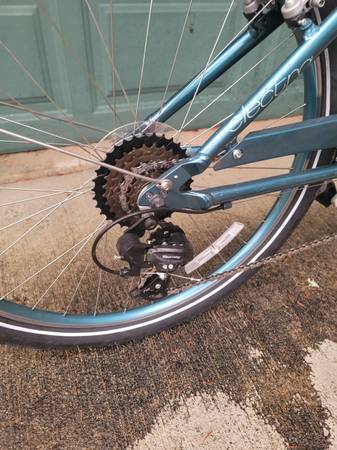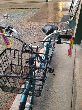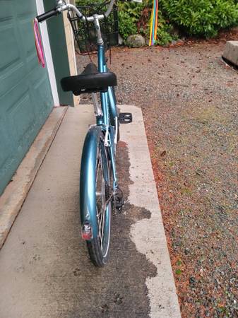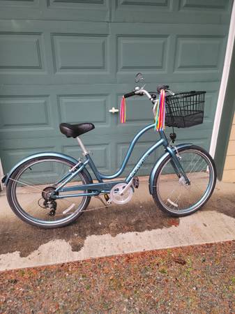Ocean blue colored Townie cruiser bike. 7 speed. Pad brakes. Barely used and kept in a garage. Excellent condition.