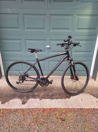 SPECIALIZED brand hyrbrid road/offroad bike. Front suspension. Disc brakes. 21 speed. Cell phone holder. Barely used and kept in a garage. Great condition.