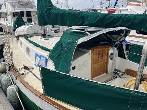 Lovely 30 foot double-ender designed by Chuck Paine, built by Victoria Yachts in Southampton England. These Victoria 30s were built under license to the Chuck Paine design of the famous Morris Yachts Leigh 30. She is equipped to do some serious offshore sailing or just cruising the San Juans and Canadian waters. She has radar, solar, Monitor self-steering vane, propane stove w oven, three heavy anchors, fiberglass tender w Yamaha 2hp outboard, dodger with covers, lee cloths, Yanmar 2GM20F diesel in great condition, spares, tools & more. Go to Sailboatdata.com and look up Victoria 30 or her sisterships the Leigh 30.