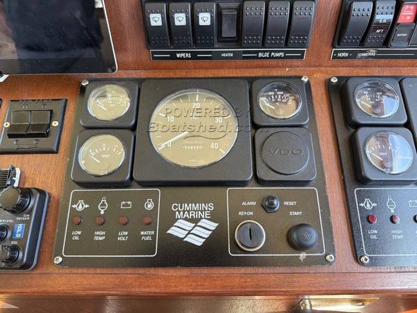 The full keel provides stability, the twin Cummins 370hp engines provide power. Coupled with a bow thruster, she maneuvers well in tight spaces. She has wide flat side decks, tall sturdy railings and a large aft deck allowing safe passage along the decks while underway, anchoring or docking.