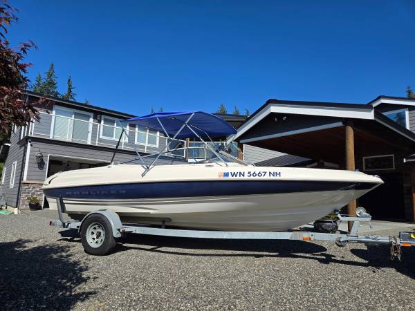 1999 Bayliner Capri 2050 LS Walk Through Bow, classic Bayliner Blue/white exterior and white interior, fresh water boat used on Lake Washington and for the past seven years used on Lake Whatcom, Bellingham, Wa. Powered by a 5.0 Liter Mercruiser with five blade stainless steel prop, Kenwood Blue Tooth Stereo and marine speakers (6), Blue Bimini, all ski equipment which includes Single Ski's, Kid's Training Doubles, Standard Doubles Ski's Tow Tubes and ski ropes. Surge Brakes and Tires replaced four years ago.. always stored under boat cover and winterized for the winter season... Illness forces sale.... Our loss could be your gain..