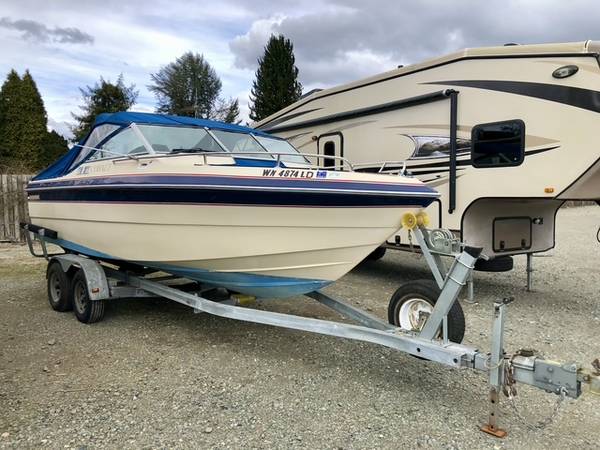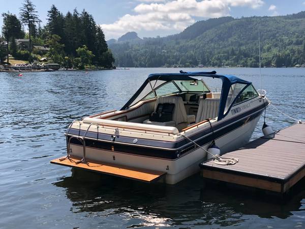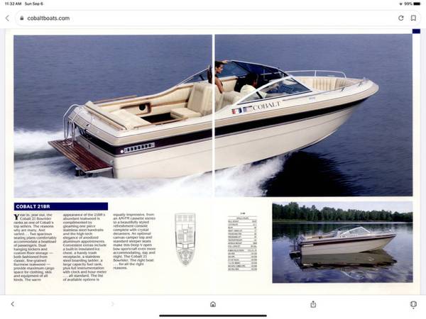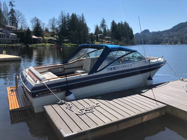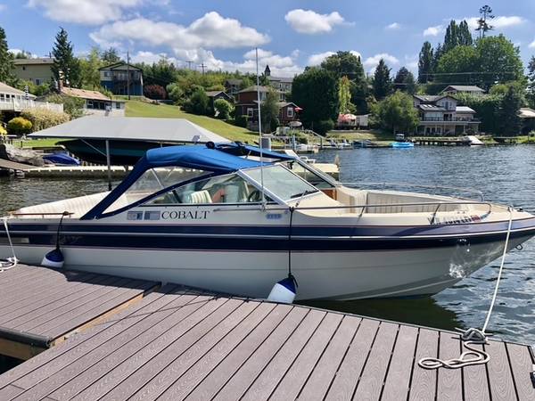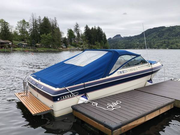21' Cobalt Bowrider. We are the second owners. 300 original hours on engine, lightly used thereafter. Rebuilt outdrive, boots impeller. Garmin GPS/sonar and marine radio included. Partial reupholstery plus full canvas for storage. Refinished teak work. Stored in a carport. We no longer have a vehicle to tow the boat. Please contact us for a viewing or with any questions. Willing to entertain offers.
