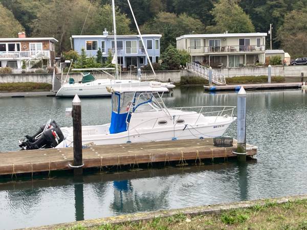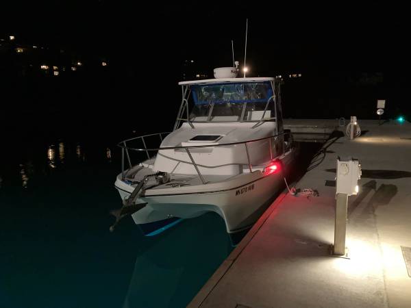 This 2007 Prokat catamaran is probably the best fishing boat available for Puget Sound. Extremely seaworthy, and Ocean proven in the worst conditions, this is the ideal downrigger fishing platform. She is rock stable, Wood free in Construction, and bulletproof. Recent survey, and new aluminum trailer built in Florida specifically for this boat. Earlier models of Prokat, 2000 through 2003, had some design problems, but those are not present in the 2007. If you are looking for a catamaran and then you need to see this Boat. A similar boat new today would be over 200,000, and I think you will agree that there would really be no advantage, other than newer engines. My three children are away from home, and the last three times I have taken the boat out Fishing, (this season) It has been just (62 y.o.) me. One person can easily launch and retrieve this boat, and it is really, with the ideal Trailer, no more difficult than launching my 18 foot skiff, I have, however, taken the skiff out at least 30 times so far this season, since it is a better match for a single fisherman. This would be the ideal family boat, since there is a spacious cabin, a real Marine head, ideal for female passengers, and no vessel could be more stable or safer on a windy day.