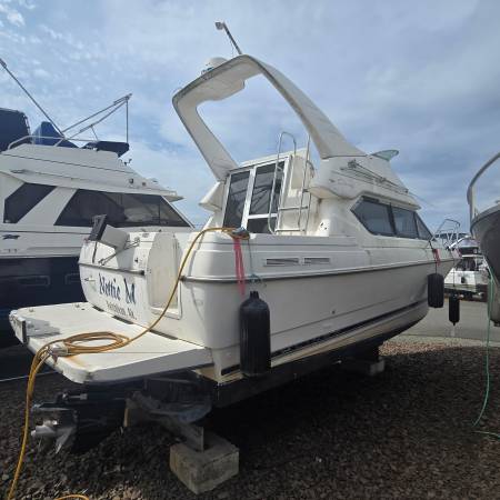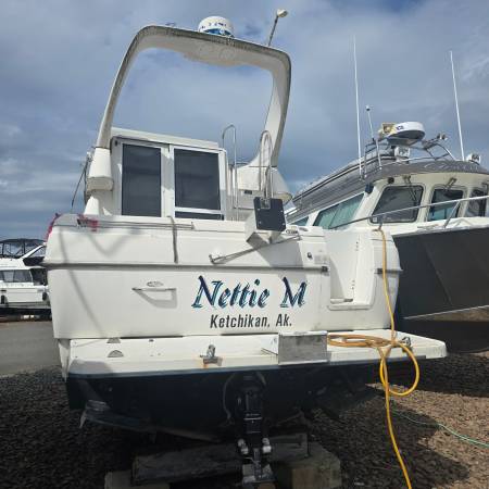 1999 Bayliner Ciera 2858 Command Bridge/MerCruiser/GM V8 454 cid (7.4L) 502 cid (8.2L) Good condition, the vessel spent its summers in Ketchikan in a slip and winters on the blocks. Great wine cruiser with salon and bed, would also be a liveable house boat for a single person or couple. 28' LOA with swim deck and prow measures to 32'. Second owner, purchased in 2022 from original owner.