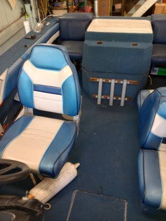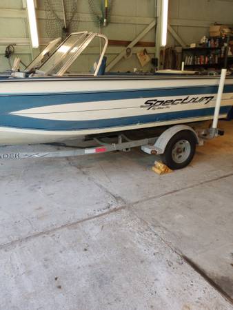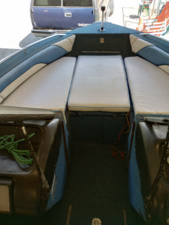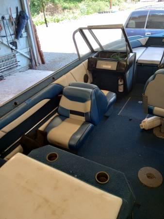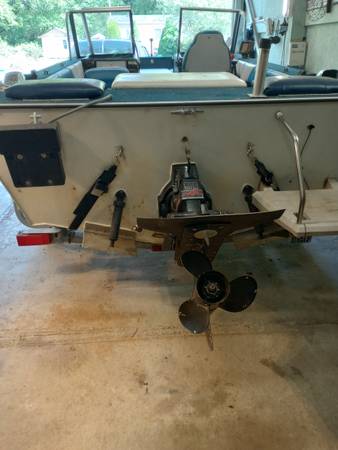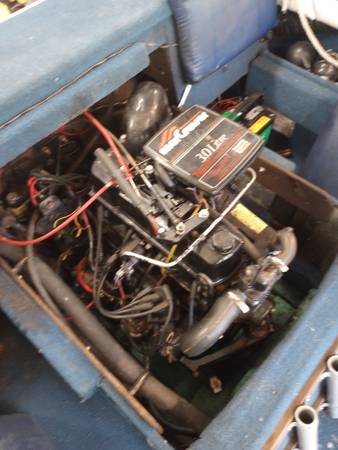 About 20 hrs on complete rebuild mercruiser 3.0. pistons, rings, head, timing gears, carb, starter, alt., etc. New auto bilge pump, F/F, radio, bimini top not pictured, but decent shape. wired for scotty downriggers, we have only used it a few times last couple years and not at all last year. time to go. 2005 ez loader trailer with oil bath bearings. $5200