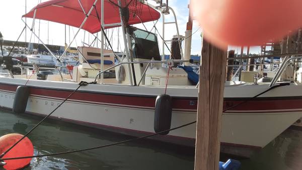 a cat you'll never go back to a single hull boat again. Selling for bigger one. 8'6" beam, draft 3', 2 fuel tanks. She carries 126 gallons of fuel. This model weighs about 3,500 lbs. and draws about 16”. twin 1997, 2 stroke, 90 hp mercury outboards power tilt. She is strong and performs very well. 2001 king galvanized Trailer made just for her fit. and a hide a cabin for storing and a Porta pot. 2 fish wells , ladder, sun cover. easy to beach for claiming or just to play on the beach for a bit.