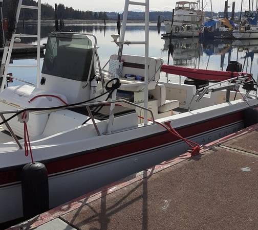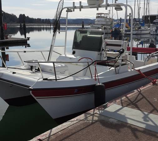 Awsome boat for fishing and crabbing, shrimping and,traveling the puget sound waters. The stable two hulls are a smooth and comfortable ride like a ferry.glide and cuts thru any chop with ease. lots of space topside and wide space walking and work space,Center counsel.We have had 8 adults at one time for a good old cruise. if you have never experienced