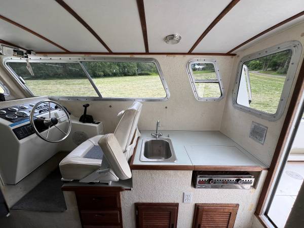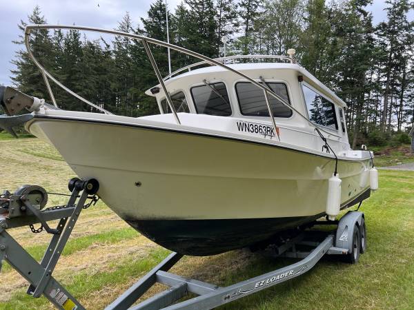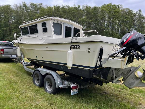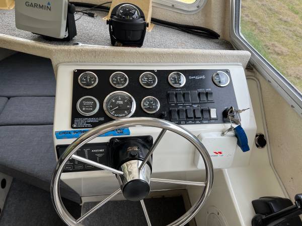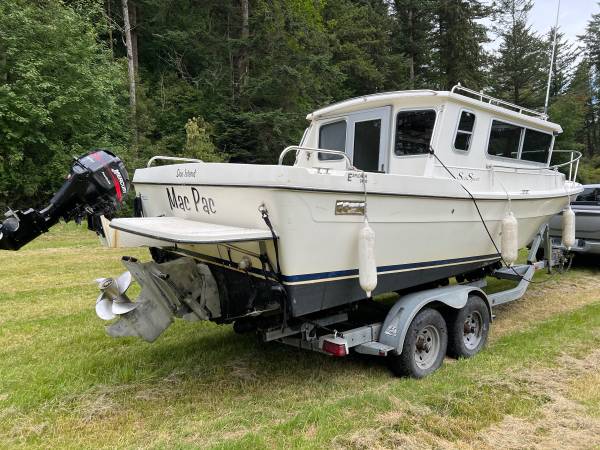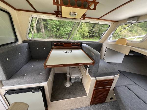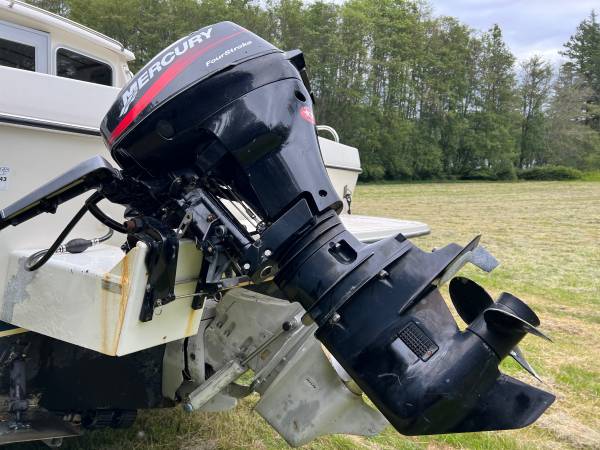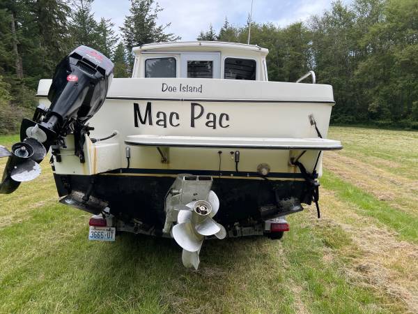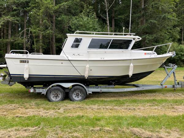 This was used during summers to commute from Twin Bridges Marina to Doe Bay most weekends, after I purchased in 2009. Twin Bridges is a dry heated storage marina. It’s been stored for the last couple years in a barn on Orcas, so it’s spent most of its life under cover. The boat is currently on its trailer on Orcas Island near Doe Bay. I would invite any legitimate potential buyer to come to the island and check out the boat on the trailer, then we can launch it for a test trial at a ramp about 15 minutes away. I’m happy to have a conversation about the boat and its history after purchasing in 2009.