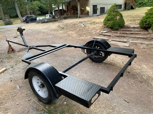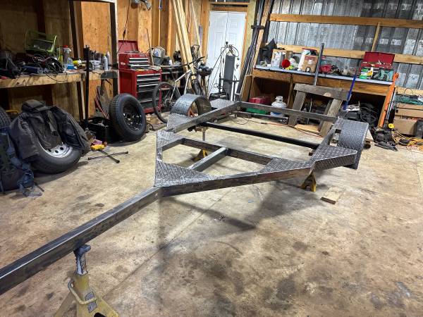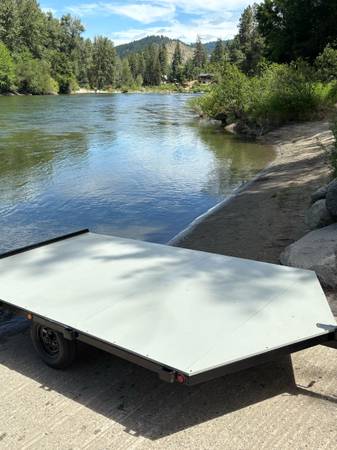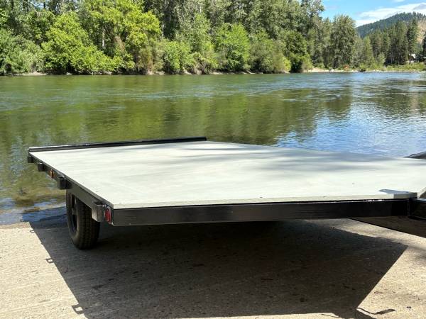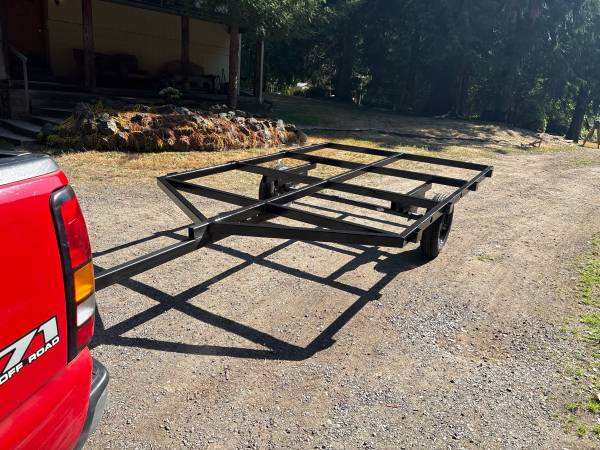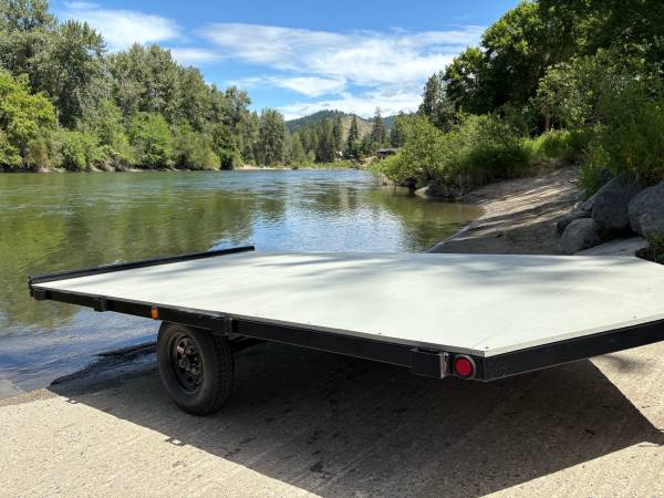 Hi for sale is 7’4” x 12’ raft trailer with 3500 lbs axle. Drift boat trailer 53” inside width 2,200 lbs torsional axle. Both frames are 2x3 tube steel.