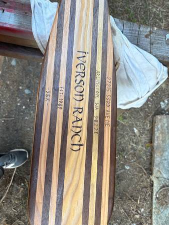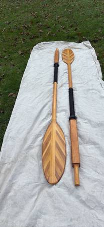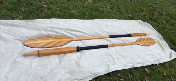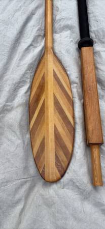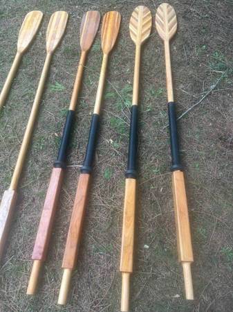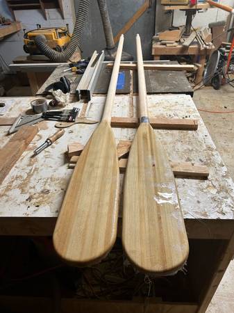 Also 9’ and 8’6” oars for sale. Handcrafted counterbalance with cherry and mahogany. Blades 5/8’s thickness, 26” length by 7 1/4”wrap with epoxy and fiberglass for strength. 26”. All oars are $450 for a set.