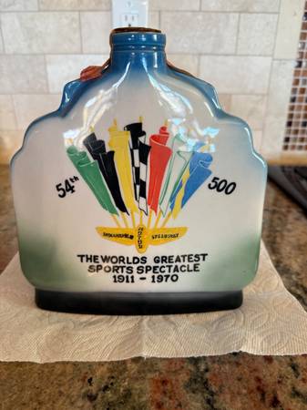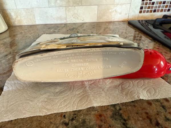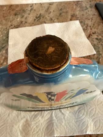 This vintage whiskey decanter is in excellent condition and it has a little whiskey in it. The cork stopper has been broken off, but you will see the leftover Cork in the bottle. All labels are...