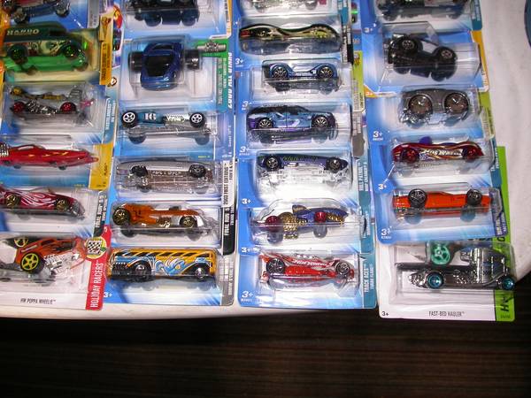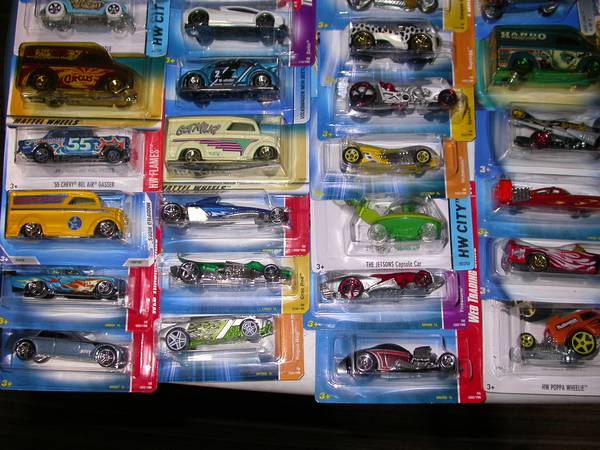 Nice mixture of older and newer. Many of the cars are Factory Set cars as evidenced by the silver stickers. All are still mounted on their original cards.