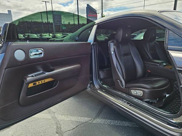 This Rolls-Royce Wraith Base is available in Black Kirsch with Moccasin interior. Connectivity Group includes: Radio (voice operated). Safety includes Front wipers (rain sensing), Front wipers (variable intermittent), Airbag deactivation (occupant sensing passenger), Front airbags (dual), Knee airbags (dual front).