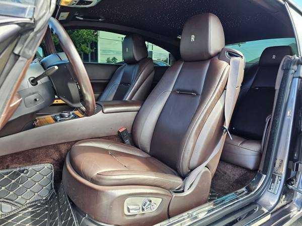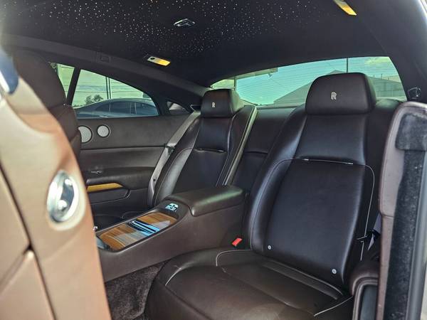 This Rolls-Royce Wraith Base is powered by a strong 6.6Ltwin Turbo V12 624hp 590ft. lbs. engine and a 8-Speed Shiftable Automatic transmission. Technology includes: Hard drive, In-Dash CD (MP3 Playback), In-Dash CD (single disc), Radio (AM/FM), Radio (HD radio).