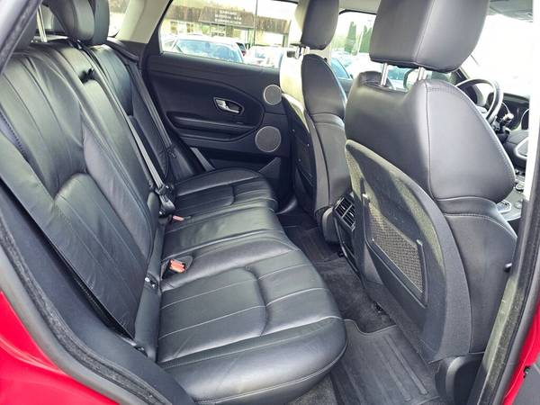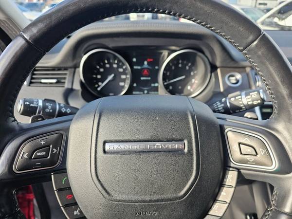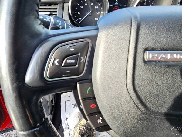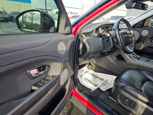 This Land Rover Range Rover Evoque SE is available in Firenze Red Metallic with Black interior. Connectivity Group includes: Electronic messaging assistance (voice operated), Hands-free phone call integration (voice operated), Radio (voice operated), Steering wheel mounted controls (voice control). Safety includes Front wipers (rain sensing), Front wipers (speed sensitive), Front wipers (variable intermittent), Airbag deactivation (occupant sensing passenger), Front airbags (dual).