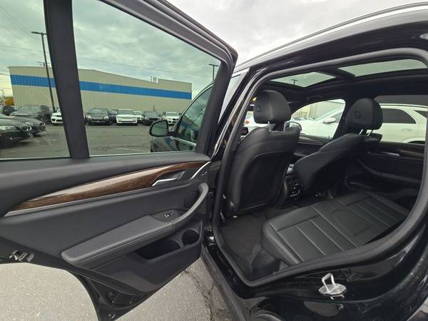 This BMW X3 xDrive30i is available in Black with Black interior. Connectivity Group includes: Hands-free phone call integration (voice operated). Safety includes Front wipers (rain sensing), Front wipers (speed sensitive), Front wipers (variable intermittent), Airbag deactivation (occupant sensing passenger), Front airbags (dual).