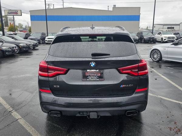 This BMW X3 M40i is available in Dark Graphite Metallic with Black w/ Contrast Stitching interior. Connectivity Group includes: Electronic messaging assistance (voice operated), Hands-free phone call integration (voice operated), Power outlet(s) (USB front), Power outlet(s) (USB-C front), Power outlet(s) (USB-C rear). Safety includes Front wipers (rain sensing), Front wipers (speed sensitive), Front wipers (variable intermittent), Airbag deactivation (occupant sensing passenger), Front airbags (dual).