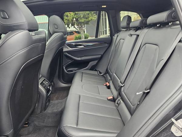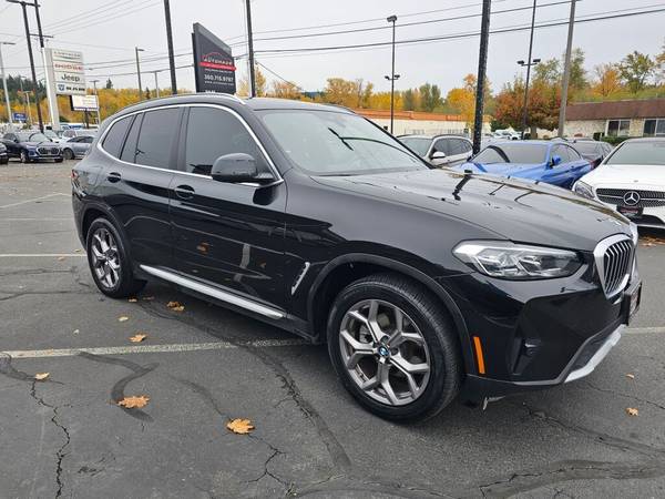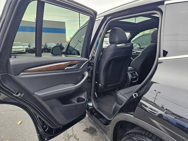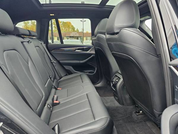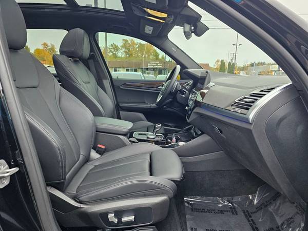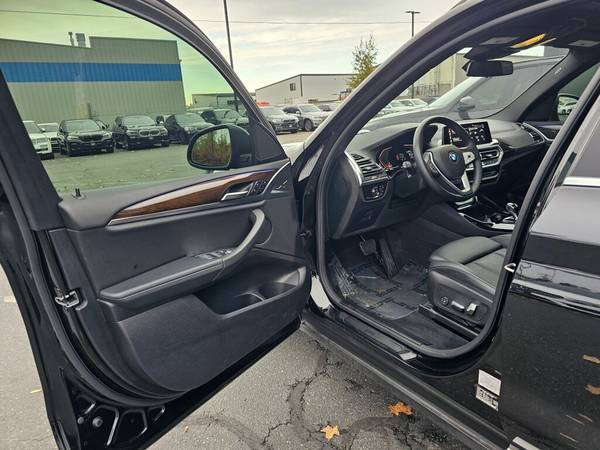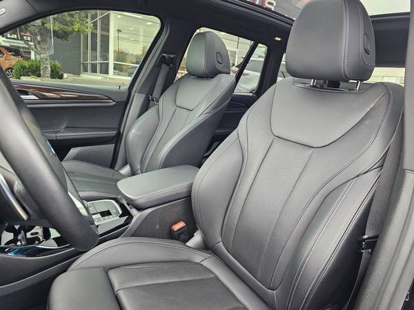 This BMW X3 xDrive30i is available in Carbon Black Metallic with Black interior. Connectivity Group includes: Electronic messaging assistance (voice operated), Hands-free phone call integration (voice operated), Power outlet(s) (USB front), Power outlet(s) (USB-C front), Power outlet(s) (USB-C rear). Safety includes Front wipers (rain sensing), Front wipers (speed sensitive), Front wipers (variable intermittent), Airbag deactivation (occupant sensing passenger), Front airbags (dual).