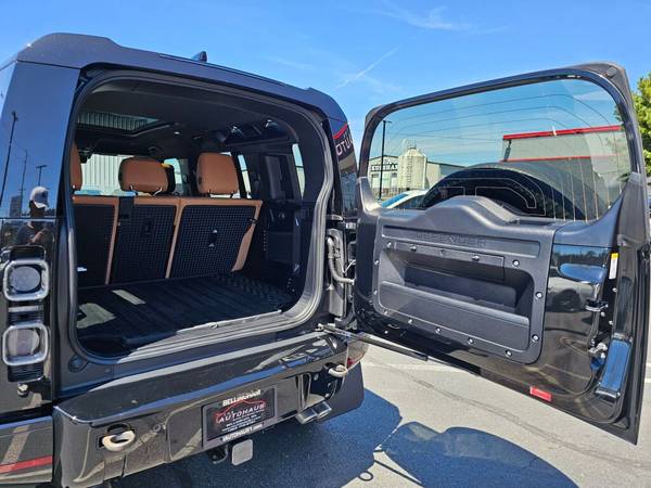 This Land Rover Defender 110 V8 is powered by a strong 5.0L Supercharged V8 518hp 461ft. lbs. engine and a 8-Speed Shiftable Automatic transmission. Technology includes: Electronic messaging assistance (voice operated), Hands-free phone call integration (voice operated), Internet radio app (Spotify), Radio (AM/FM), Radio (HD radio).