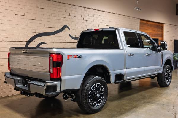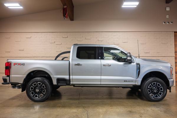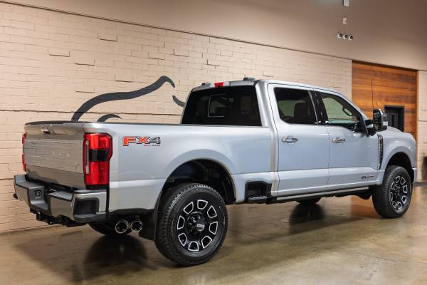 2023 Ford F-350SD Platinum Crew Cab Power Stroke 6.7L V8 DI 32V OHV Turbodiesel 10-Speed Automatic Iconic Silver Metallic F-350SD Platinum Crew Cab, 4D Crew Cab, Power Stroke 6.7L V8 DI 32V OHV Turbodiesel, 10-Speed Automatic, 4WD, Iconic Silver Metallic, Black Onyx/Carmelo w/Unique Platinum Leather 40/Console/40 Seats, Electronic-Locking w/3.31 Axle Ratio, Ford Pro Upfit Integration System, FX4 Off-Road Package, Hill Descent Control, Multicontour Seat Removal, Off-Road Specifically Tuned Shock Absorbers, Order Code 713A, Power-Deployable Running Boards, Rapid-Heat Supplemental Cab Heater, Twin Panel Power Moonroof, Unique FX4 Off-Road Box Decal.