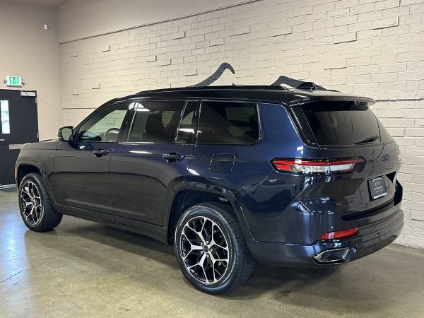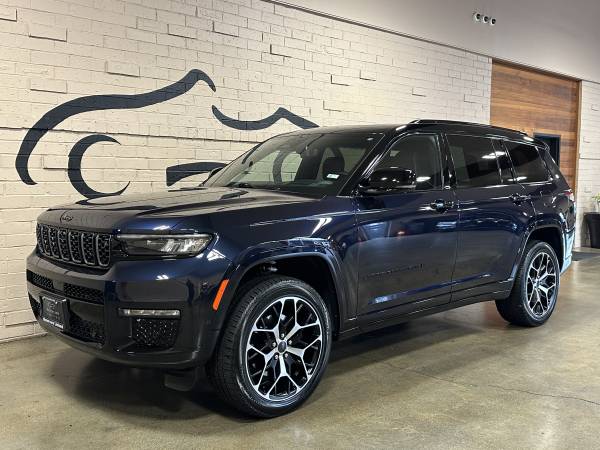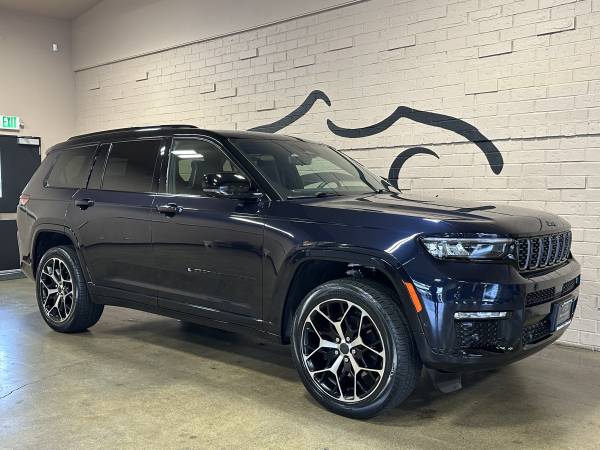 2023 Jeep Grand Cherokee L Summit Reserve 3.6L V6 24V VVT 8-Speed Automatic Midnight Sky ONE OWNER, Grand Cherokee L Summit Reserve, 3.6L V6 24V VVT, 8-Speed Automatic, 4WD, Midnight Sky, Global Black w/Palermo Leather Seats, 19 Speakers High Performance Audio, 2nd Row Manual Window Shades, 3rd row seats: split-bench, 950 Watt Amplifier, Active Noise Control System, Advanced Protech Group IV, Deluxe Headliner, Front Passenger Interactive Display, Gloss Black Exterior Accents, Gloss Black Roof Rails, Heads-Up Display, High Altitude Package, Interior Rear Facing Camera, Luxury Tech Group V, Navigation System, Neutral Gray Exterior Accents, Night Vision/Pedestrian-Animal Detection, Painted Door Cladding, Palermo Leather Door Trim, Palermo Leather Seats, Power moonroof, Quick Order Package 23U Summit Reserve, Radio: Uconnect 5 Nav w/10.1" Display, Rearview Autodim Digital Display Mirror, Summit Reserve, Summit Reserve Badge, Ventilated Rear Seats, Wheels: 21" x 9" Black Painted Aluminum, Wireless Charging Pad.