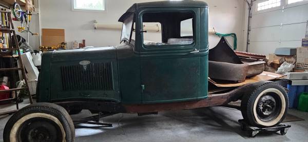 Restoration project for car enthusiasts. This is a shell of a (original paint) green 1934 Ford pickup, have clean Washington title, located in South Whidbey Island in a garage, ready to go to someone who will give it a new lead in life. Not in running condition, missing a few parts. Head-lights re- chromed. Has cargo box, 3 fenders. This is complete rebuild project3