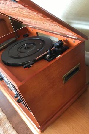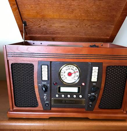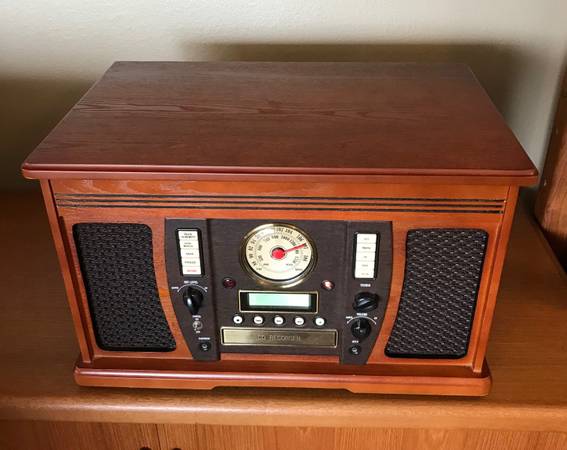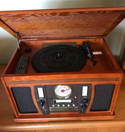 Innovative Technology Wooden Music Center 5in1: plays AM, FM, records, CDs, cassette tapes and Aux input. Records vinyl, cassettes and Aux input to CD. Comes with Remote. Excellent condition/ rarely...