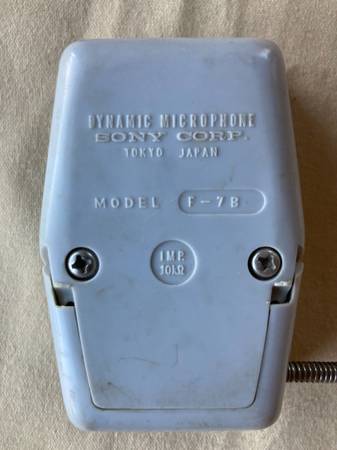 Sony F-7B 10 kOhm Dynamic Mic, Standard molded 1/4" phone TS plug Model: F-7B Finish: Light and dark gray Made In: Japan Year: 1970s Condition: untested 135