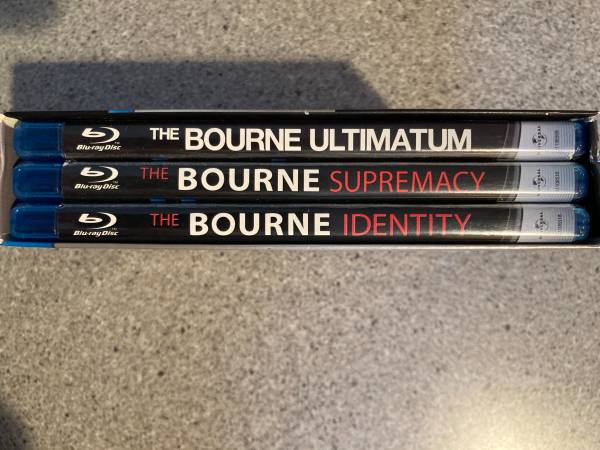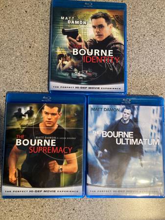 The Bourne Trilogy Blu-ray - 3 Disc Set 1. The Bourne Identity 2. The Bourne Supremacy 3. The Bourne Ultimatum - Includes hours of bonus features - Condition: Good 137