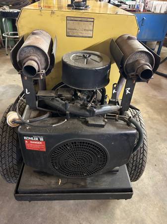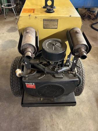 Hobart portable welder/generator, kohler 18 magnum engine drive. Weld leads with stinger /ground included. Engine starts and runs good, generator works but welder arc is weak. This welder looks new...
