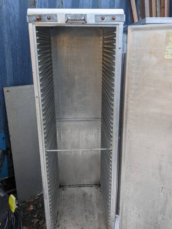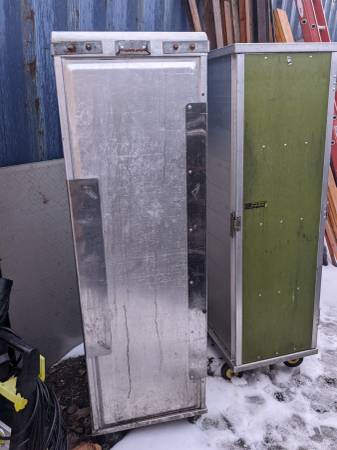 Full size bakery cabinets. 4 available! Aluminum constructions with casters. All are functional and in good condition. $100/each.