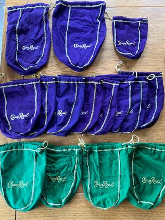 $15 for all 15 bags - 4 green, 11 purple - 1 small, 12 large, 2 extra large 160