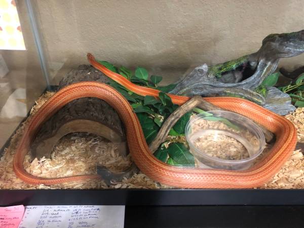 Sammy Waffles the corn snake! Comes in his very own 4x2x2 enclosure with led lights and radiant heat panel. He’s a great eater. Our lives are getting busier and it’s hard to find someone to feed him when we’re gone for awhile. He’s a beautiful boy who deserves more attention!