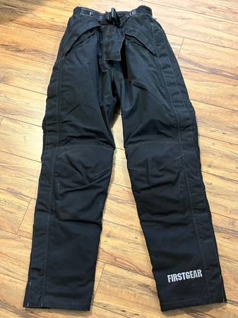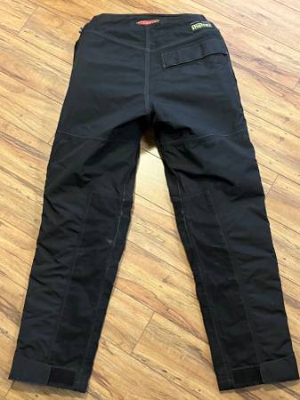 Motorcycle riding pants in excellent condition Waterproof Removable thermal liner Does not include hip/knee pads Full length leg zippers with Velcro weather flaps First Gear, Adventure, Street