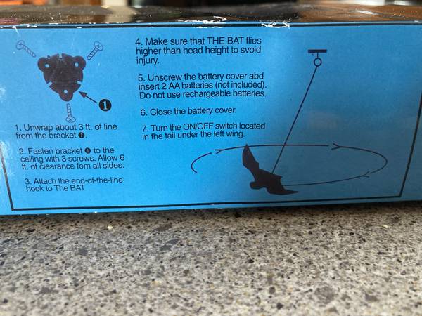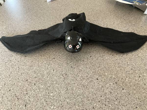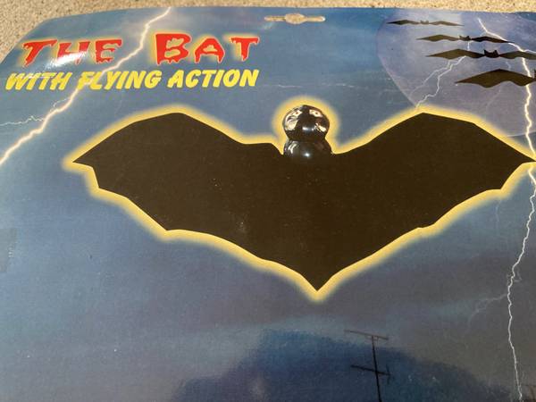 - Bat flaps wings and flies in circles, eyes light up red, uses 2 AA batteries (included)