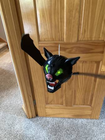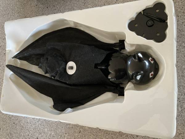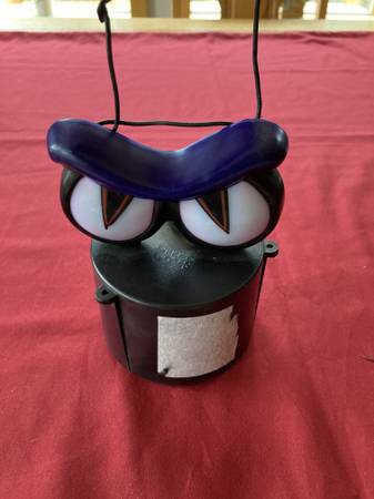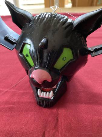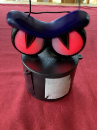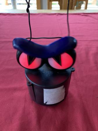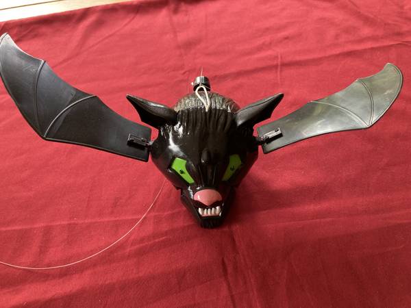 - Bat flaps wings, jaw opens/closes, propeller in back spins, eyes light up green, uses 2 AA batteries (included)