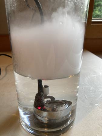 - Makes a misty vapor when plugged in and submerged in water (see pics)