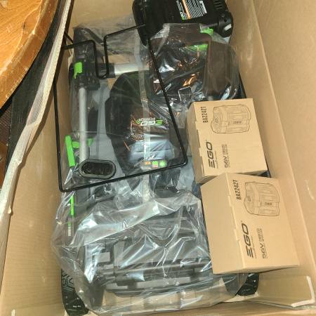 This is a brand new in the box mower. It comes with two batteries , a bag catcher and a mulcher device. All parts are still in the box other than the battery was removed and then put back into the...