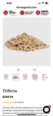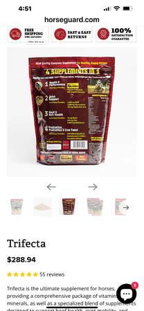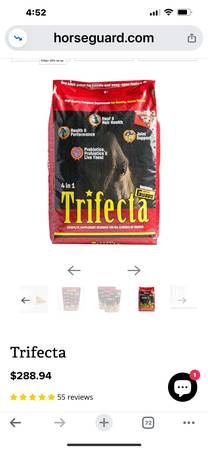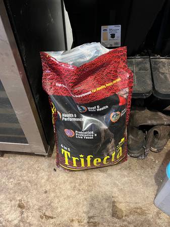Trifecta 4 in 1 horse supplement. Brand new 40 lb bag. I opened this, not realizing I had not completely finished my last bag. It is an excellent product. Sadly, I no longer need it. Advert will be...