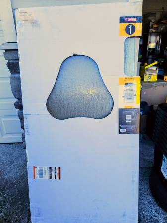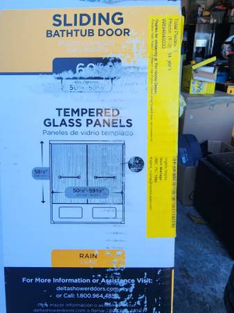 Tempered glass panels, fits opening 50 5/8" - 59 3/8". Rain pattern. Purchased for a bathroom reno but never installed. New in box.
