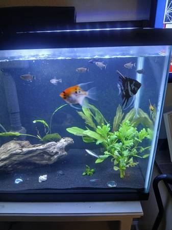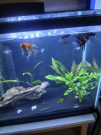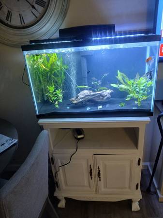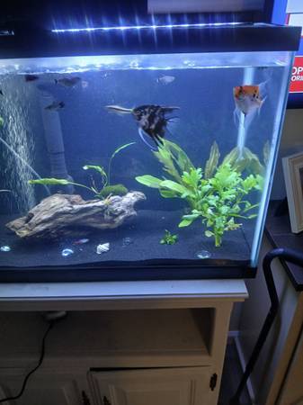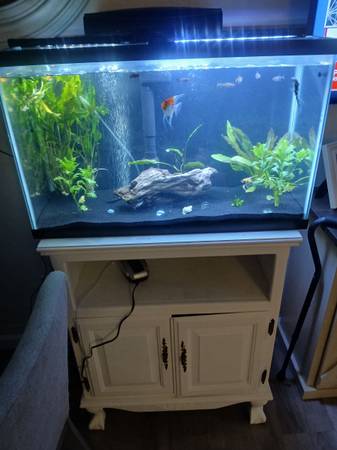 Stand and everything in it for sale live plants black sand pump filter different color lightor all for 150 and fish